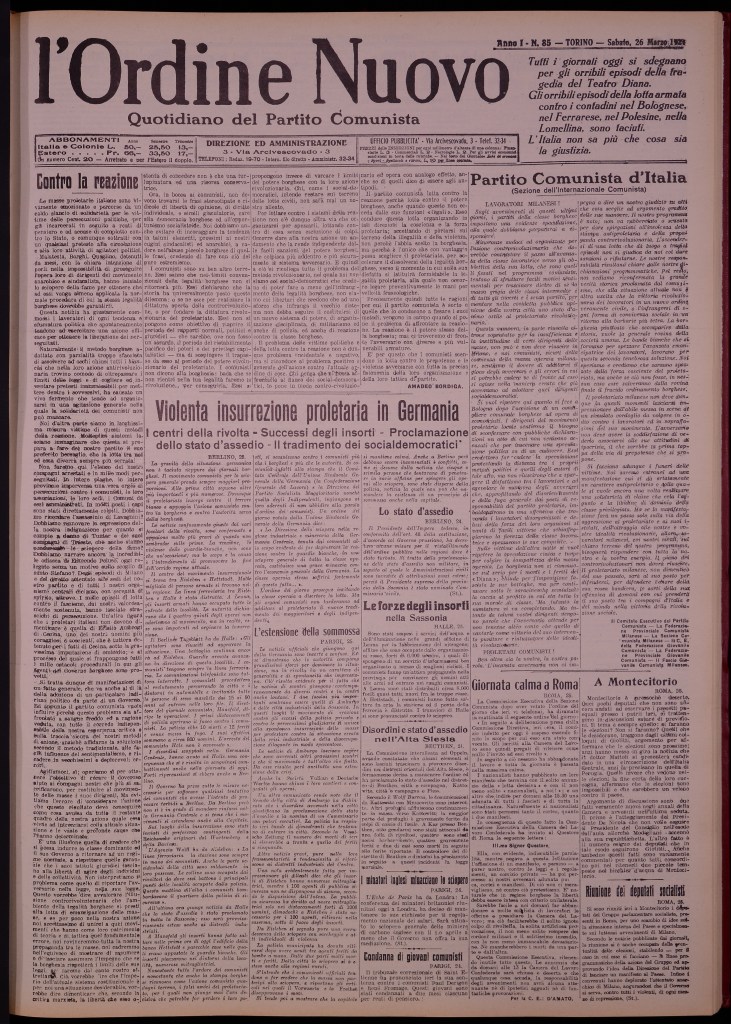 Da “L’Ordine Nuovo” del 26 marzo 1921. Firmato Amadeo Bordiga.