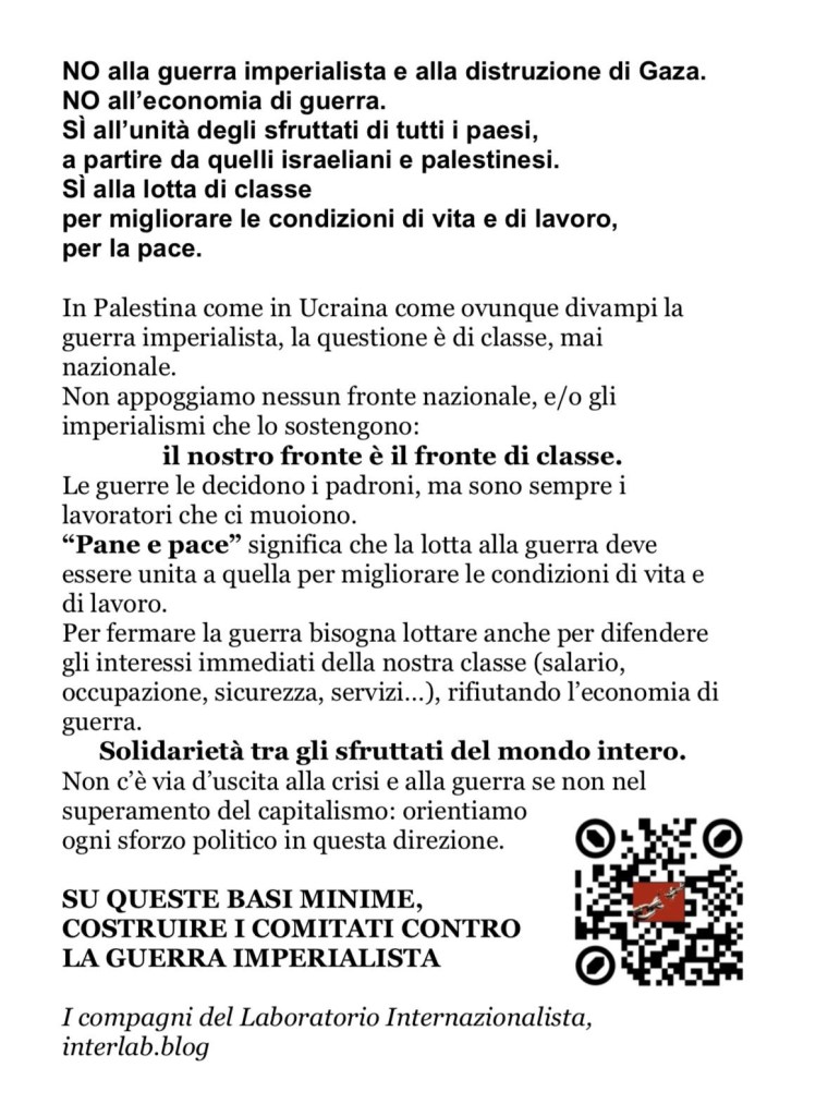In Palestina come in Ucraina come ovunque divampi la guerra imperialista, la questione è di classe, mai nazionale.